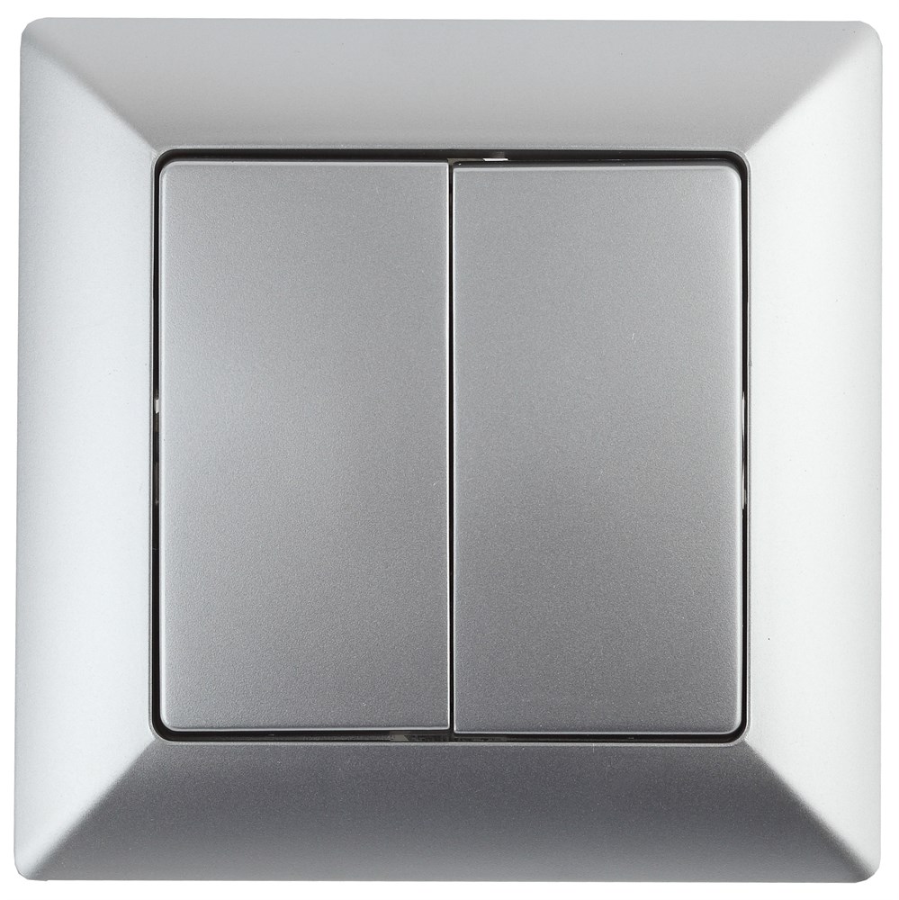 Intro Переключатель Solo 4-107-03 двухклавишный 10А-250В, IP20, СУ, алюминий Б0053611