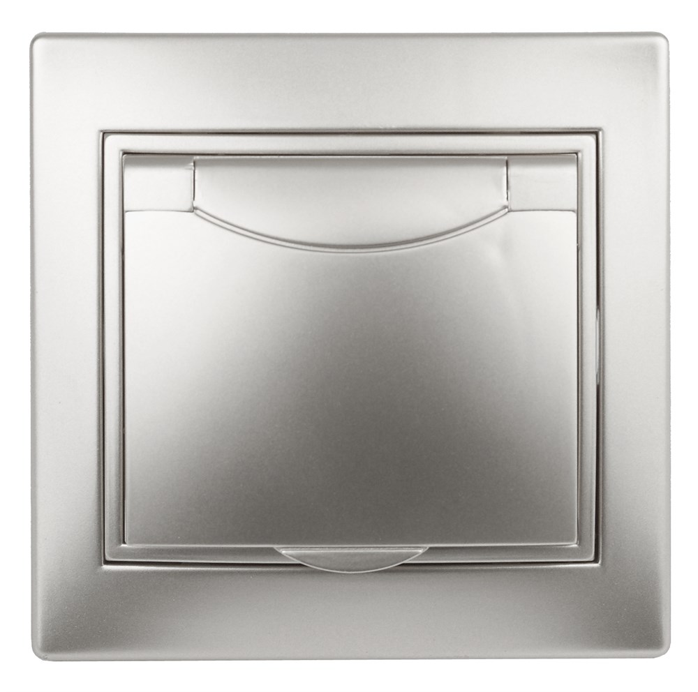 Intro Розетка Plano 1-203-03 с заземлением 2P+E Schuko с крышкой, 16А-250В, IP20, СУ, алюминий Б0053892