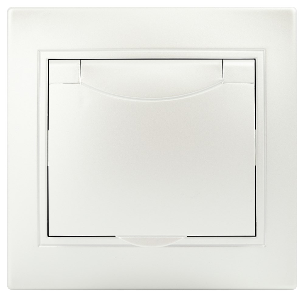 Intro Розетка Plano 1-203-06 с заземлением 2P+E Schuko с крышкой, 16А-250В, IP20, СУ, перламутр Б0053898