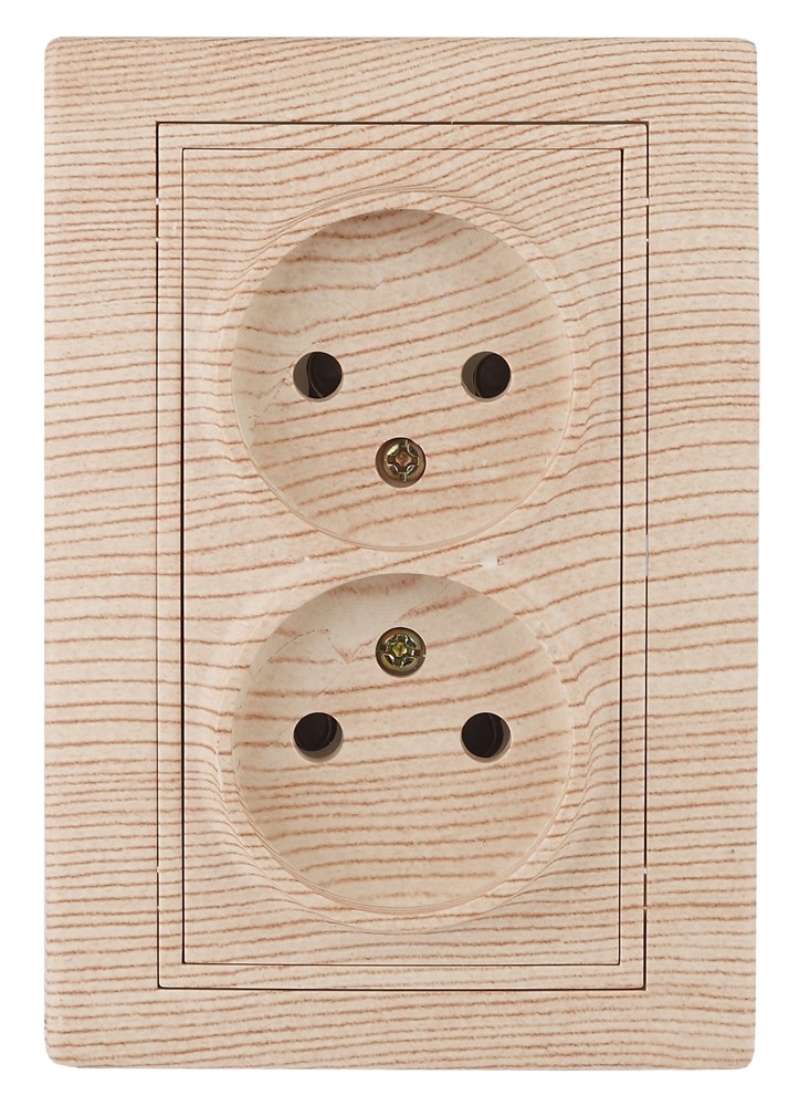 Intro Розетка Plano 1-204-11 без заземления двойная 2х2P, 16А-250В, IP20, СУ, сосна Б0053914