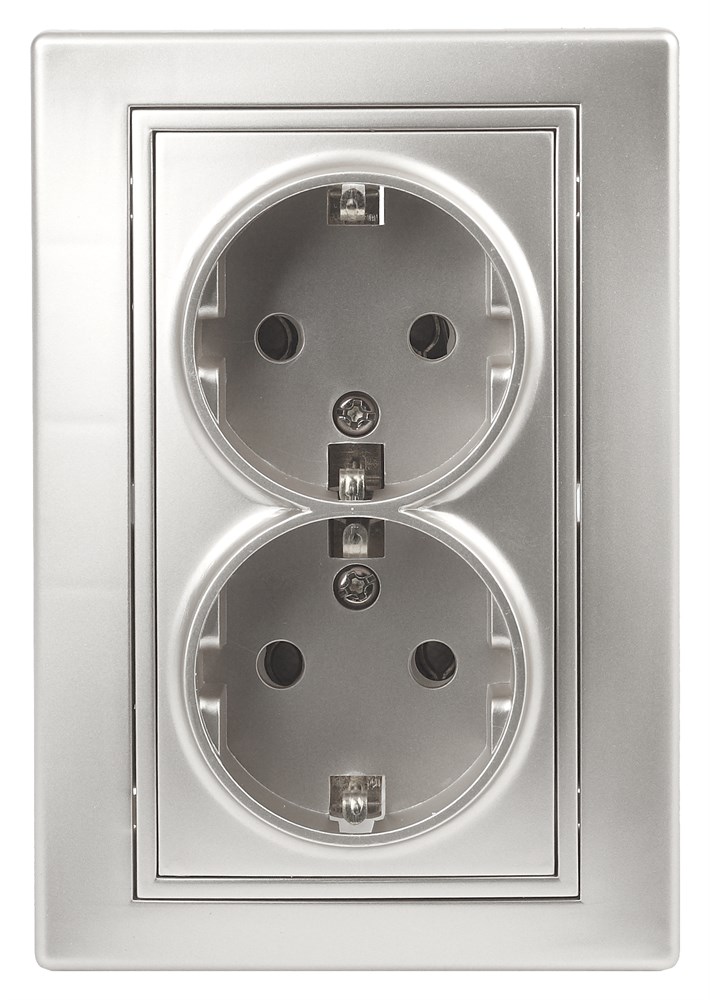 Intro Розетка Plano 1-205-03 с заземлением двойная 2X2P+E Schuko, 16А-250В, IP20, СУ, алюминий Б0053917