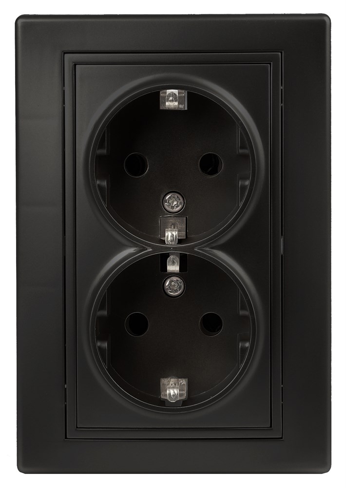 Intro Розетка Plano 1-205-05 с заземлением двойная 2X2P+E Schuko, 16А-250В, IP20, СУ, антрацит Б0053919