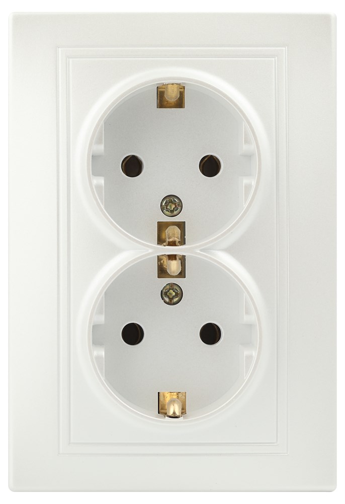Intro Розетка Plano 1-205-06 с заземлением двойная 2X2P+E Schuko, 16А-250В, IP20, СУ, перламутр Б0053920