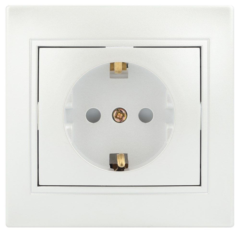 Intro Розетка Plano 1-206-06 с заземлением 2P+E Schuko со шторками, 16А-250В, IP20, СУ, перламутр Б0053929