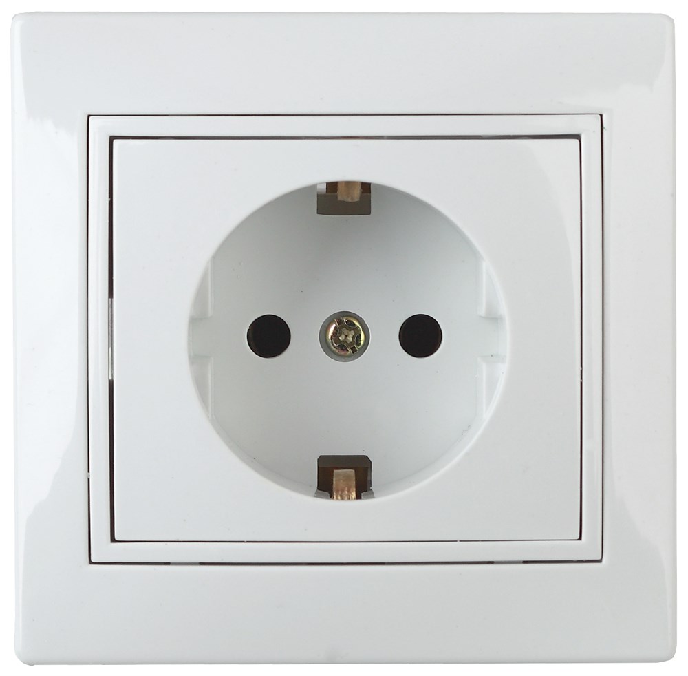 Розетка с заземлением 2P+E Schuko со шторками, 16А-250В, IP20, СУ, б.л., белый Intro Plano 1Э-206-01