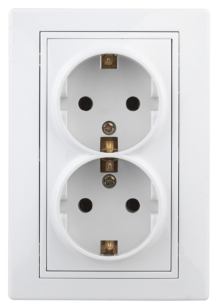 Розетка двойная с заземлением 2X2P+E Schuko со шторками, 16А-250В, IP20, СУ, б.л., белый Intro Plano 1Э-208-01