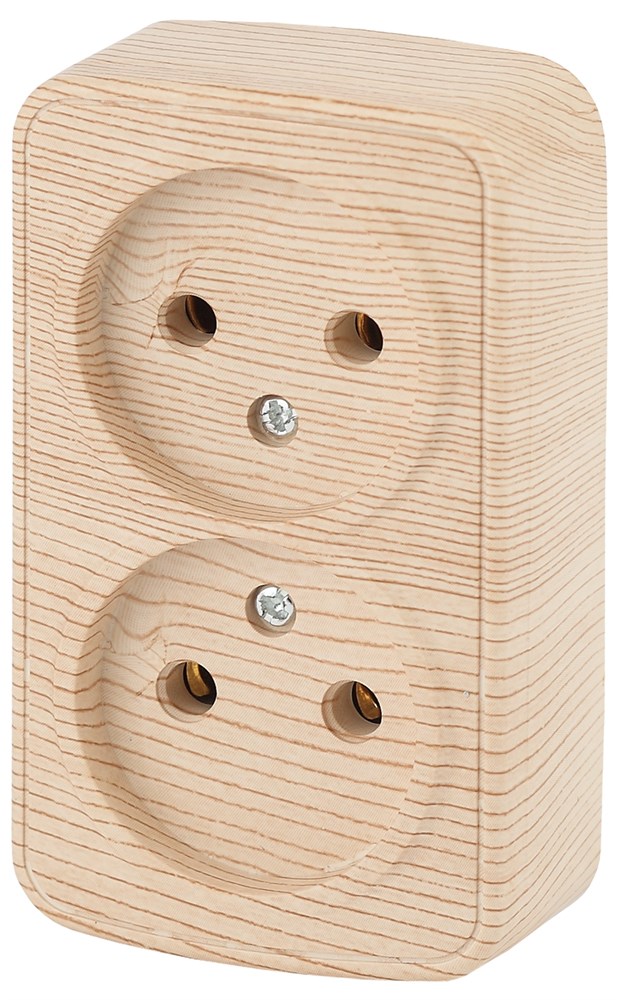 Розетка Intro Polo 3-203-11 двойная без заземления 2х2P, 16A-250В, IP20, ОУ, сосна