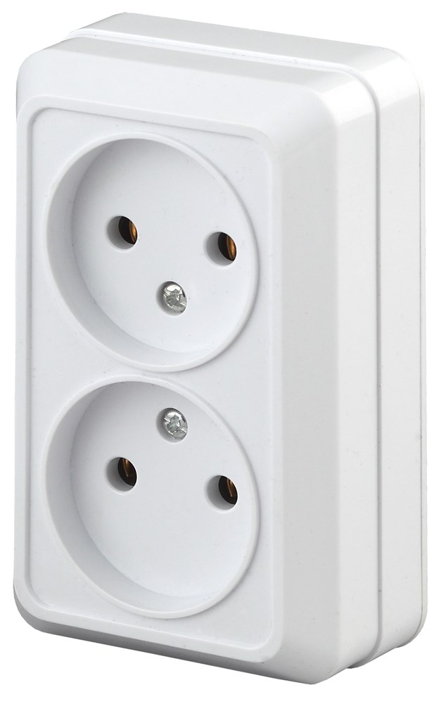 Intro Розетка Quadro 2-203-01 двойная без заземления 2х2P, 16А-250В, IP20, ОУ, Quadro, белый Б0053792