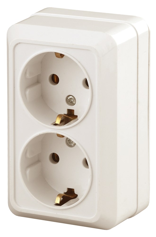 Intro Розетка Quadro 2-204-02 с заземлением двойная 2х2P+E Schuko, 16А-250В, IP20, ОУ, слоновая кость Б0053803