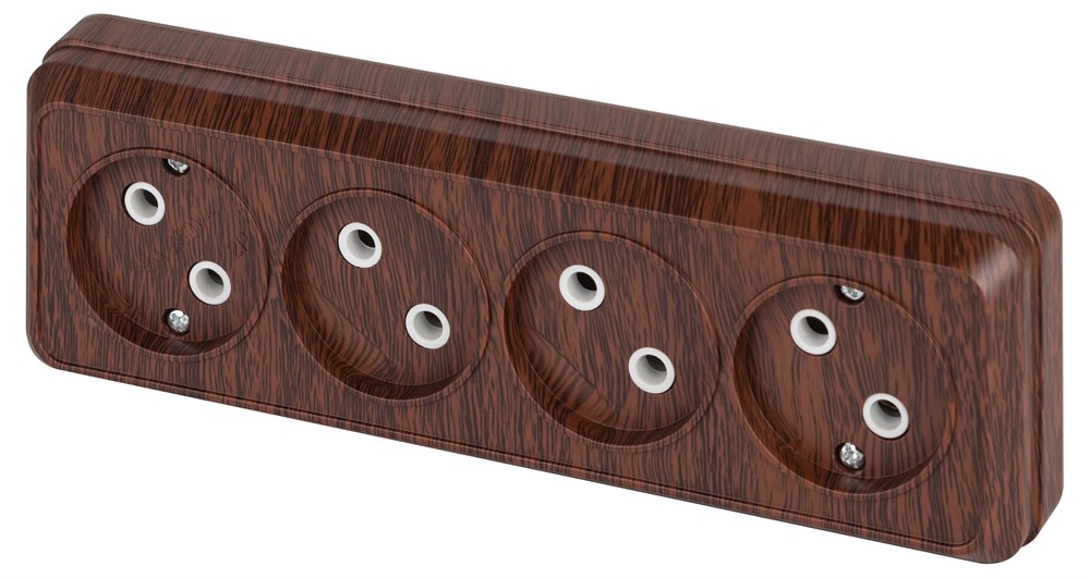 Intro Розетка Quadro 2-207-10 без заземления четырехместная 4х2P, 16А-250В, IP20, ОУ, венге Б0053833