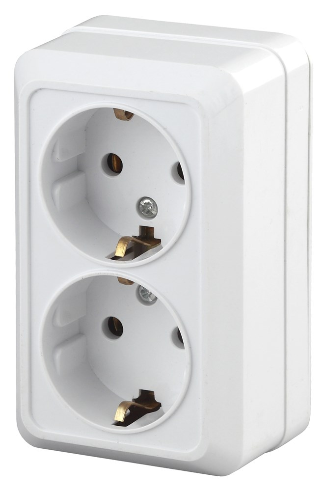 Розетка Intro Quadro 2Э-204-01 двойная с заземлением 2х2P+E Schuko, 16А-250В, IP20, ОУ, без монтажной пластины, белый