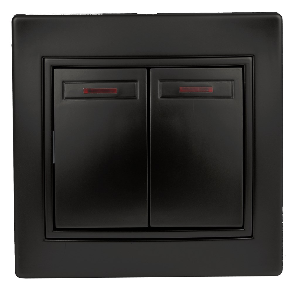 Выключатель двойной с подсветкой, 10А-250В, IP20, СУ, антрацит Intro Plano 1-105-05