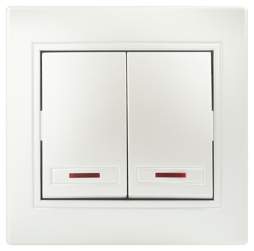 Intro Выключатель Plano 1-105-06 двухклавишный с подсветкой, 10А-250В, IP20, СУ, перламутр Б0053782