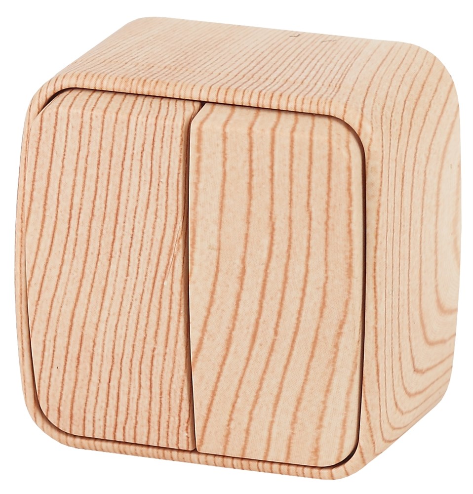 наименованиеВыключатель Intro Polo 3-104-11 двухклавишный, 10A-250В, IP20, ОУ, сосна