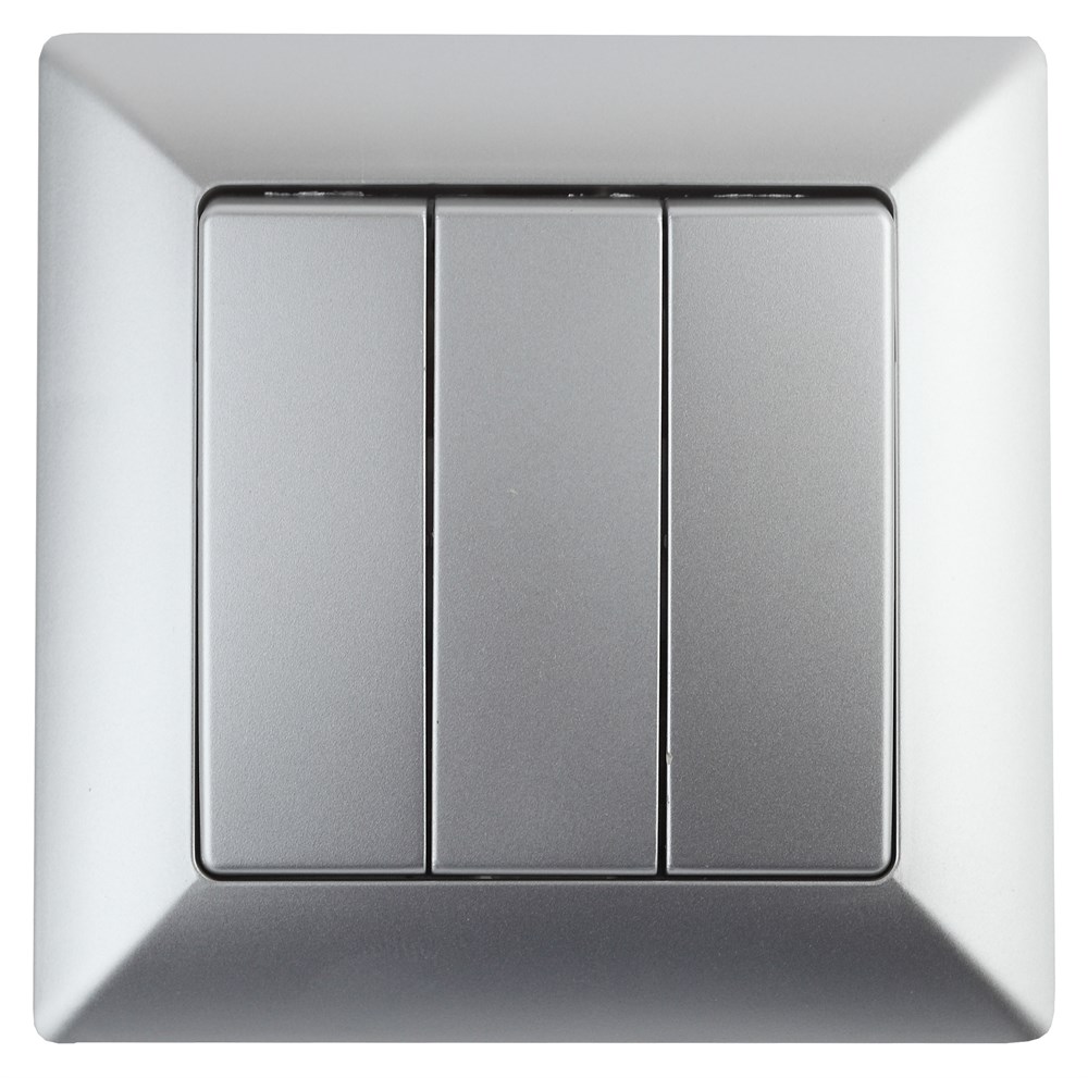 Intro Выключатель Solo 4-106-03 трехклавишный 10А-250В, IP20, СУ, алюминий Б0053603