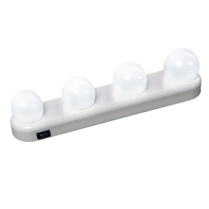 Беспроводной светодиодный светильник предназначен для использования дополнительной подсветки зеркал в прихожей, гардеробной, ванной. Передает идеальное освещение, не искажает цвета вашего образа и позволит акцентировать внимание даже на самых важных деталях. Светильник оформлен в современном стиле и будет прекрасным дополнением дизайна. Легкая и быстрая установка при помощи присосок на гладкую глянцевую поверхность (зеркало, стекло). Работает от 4 батареек типа АА (не входят в комплект поставки). Выключатель подсветки расположен на боковом основании.