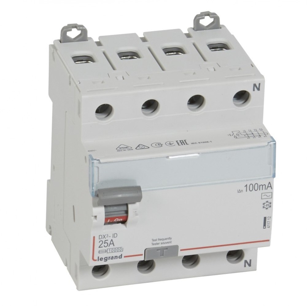 Legrand DX3 УЗО 4P 25А AC 100мА N справа 411712
