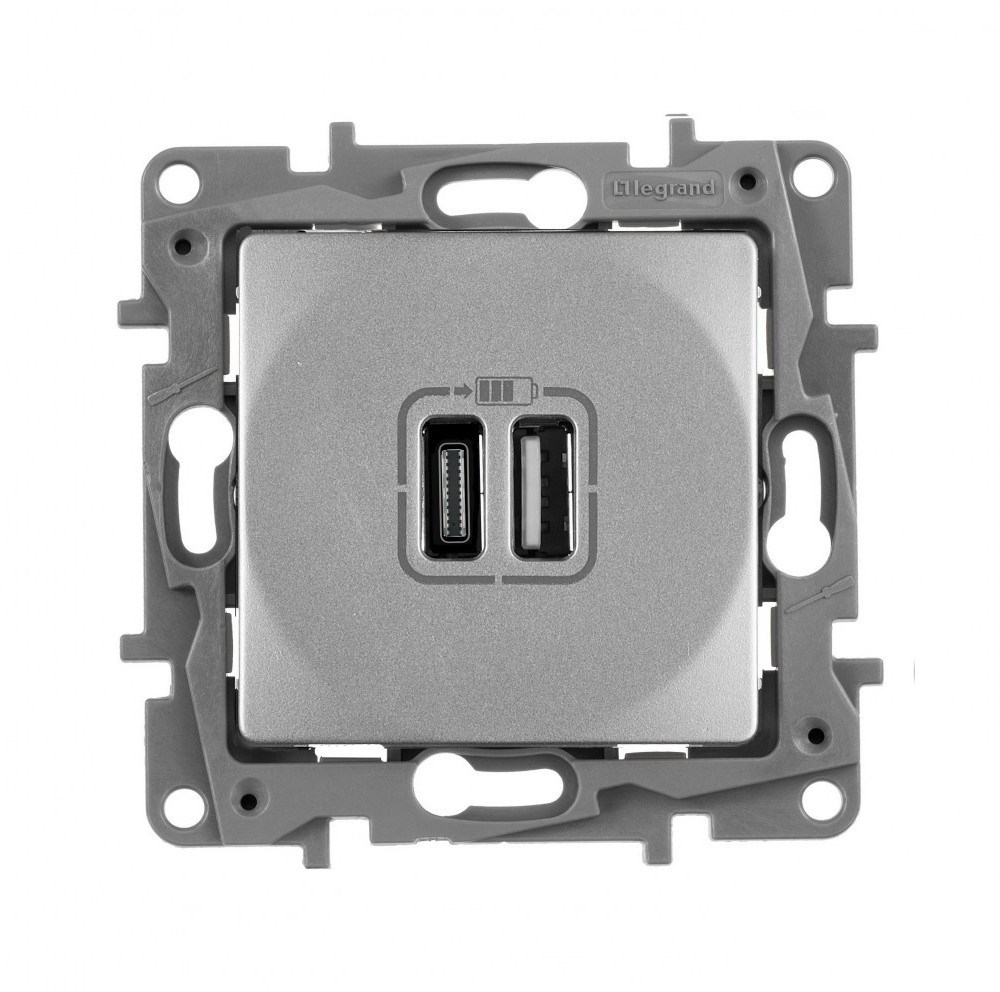 Legrand Etika, алюминий, зарядное устройство с USB разъемами A-C 672436