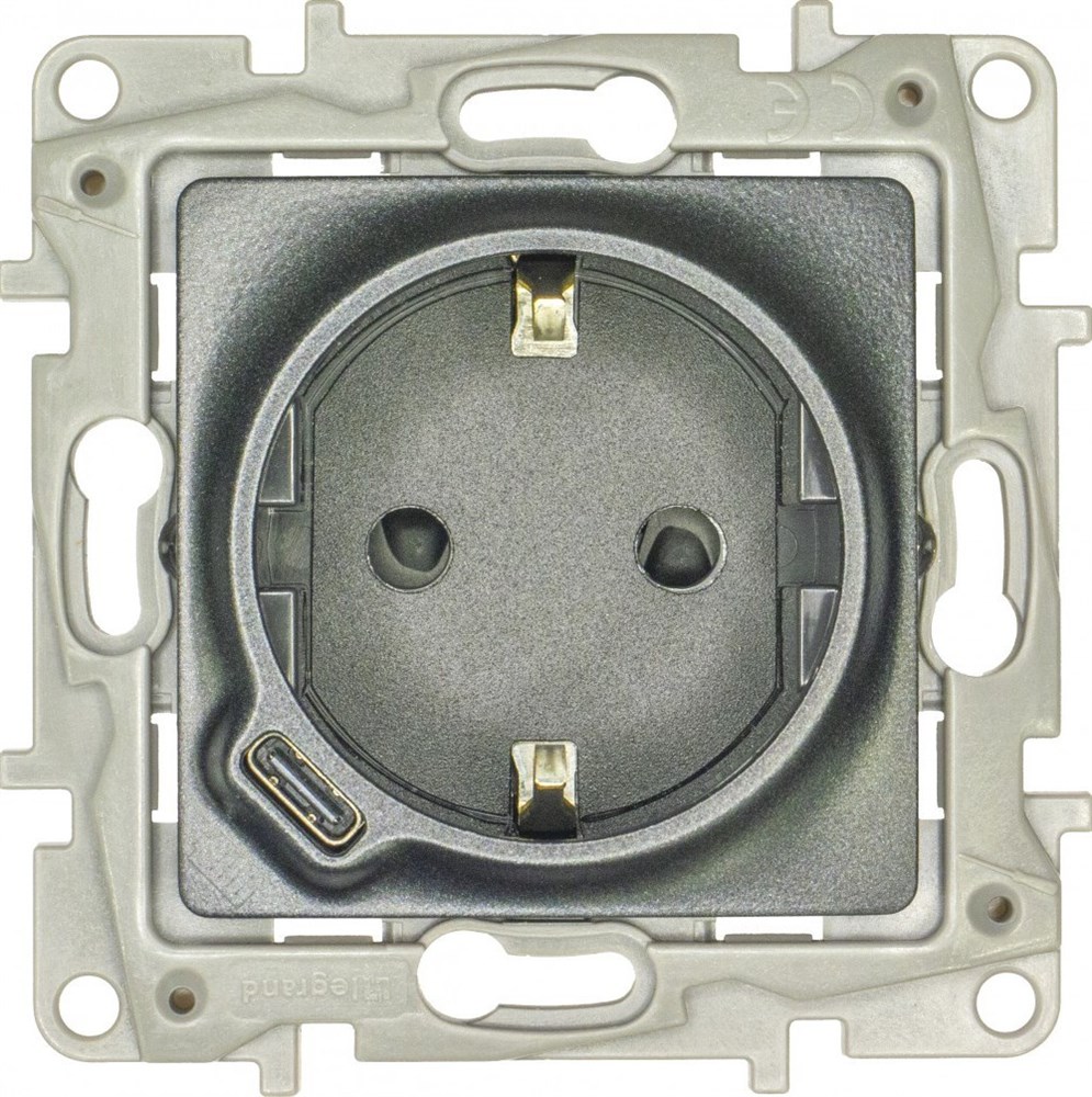 Legrand Etika антрацит розетка с заземлением, со шт. 16А 250В с USB тип C 1500мА 7,5Вт безвинтовые зажимы 672688