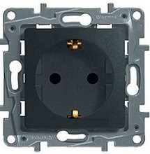 Legrand Etika антрацит розетка с заземлением, винт. клеммы, 16А, 250 В 672621