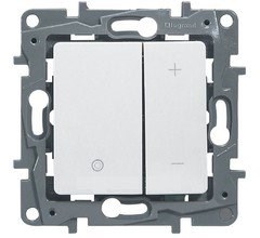 Клавишный светорегулятор Legrand Etika для скрытого монтажа, цвет белый. Позволяет регулировать яркость ламп. Экономит электроэнергию. Благодаря функции плавного включения существенно продлевает срок службы ламп. Встроенная память позволяет одним нажатием выводить яркость на комфортный уровень. Предусмотрен режим с фиксированными уровнями яркости (33-66-100%). Электронная защита от перегрузки и короткого замыкания. Особенности:- Светорегулятор универсальный.Подходит для управления лампами:Накаливания и галогенными в диапазоне 3-400Вт;Диммируемыми светодиодными в диапазоне: 3-75 Вт (не более 10 шт.)- Плавное включение и выключение;- Запоминание последнего уровня яркости;- Режим с фиксированными уровнями яркости (33-66-100%);- Режим плавного отключения в течение часа;- Защита от перегрузки и короткого замыкания.- Двухпроводное подключение (в разрыв фазного проводника). - Устанавливается в стандартную монтажную коробку.- Комплектуется инструкцией.- Возможно внешнее управление (линия до 50 метров), кнопками без подсветки с Н/О контактом.Особенности серии Etika:- Корпус механизма- высококачественный поликарбонат, не проводит электрический ток, не поддерживает горение. - Специальный профиль внешнего контура механизма обеспечивает простоту и безошибочность многопостового монтажа. - Острые крепёжные лапки с широким углом раскрытия, обеспечивают надёжную фиксацию в монтажной коробке.