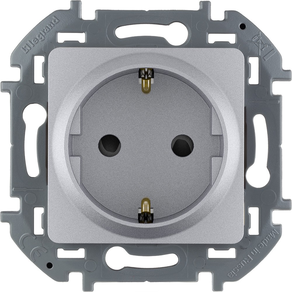 Розетка с заземлением и интегрированными защитными шторками Legrand Inspiria для скрытого монтажа , цвет Алюминий. Максимальный ток 16 А, напряжение 250В, максимальная мощность 3680 Вт. Применяется для электропитания в зданиях с проводкой с заземлением (с защитным проводником). Защищает детей и других пользователей от удара электрическим током. Шторки осуществляют защитную функцию путём ограничения доступа к токоведущим контактам. Доступ открывается только при подключении вилки. Особенности изделия: - Контактная группа изготовлена из высококачественной латуни CuZn37, имеет высокую степень упругости и сохраняет плотный контакт с вилкой, при длительной эксплуатации. - Зажимы для присоединения проводников винтовые П-образной формы для исключения бокового выдавливания провода. - В зажимах установлены качественные винты с никель-цинковым напылением для надежного резьбового соединения даже при чрезмерных моментах затяжки. - Защитный контакт с широким основанием и специальным профилем для упгугости при подключении/отключении и плотного контакта с вилкой. - Лицевая панель крепится на защелках. Изготовлена из прочного глянцевого поликарбоната, стойкого к механическим воздействиям, выгоранию и загрязнениям. - Защитные шторки интегрированы в механизм, обеспечивают высокий уровень электробезопасности и не затрудняют подключение и извлечение вилки.