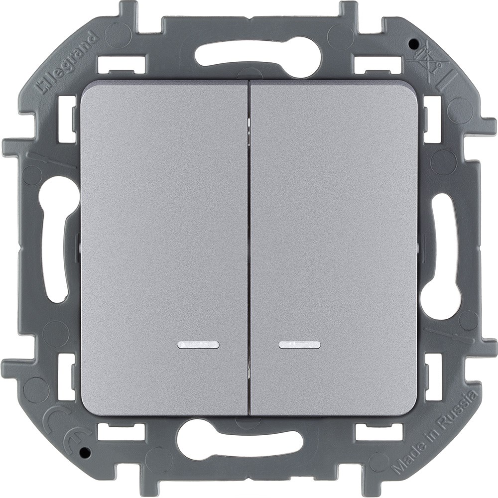 Legrand Inspiria алюминий выключатель двухклавишный с подсветкой/индикацией 10 AX - 250 В 673632