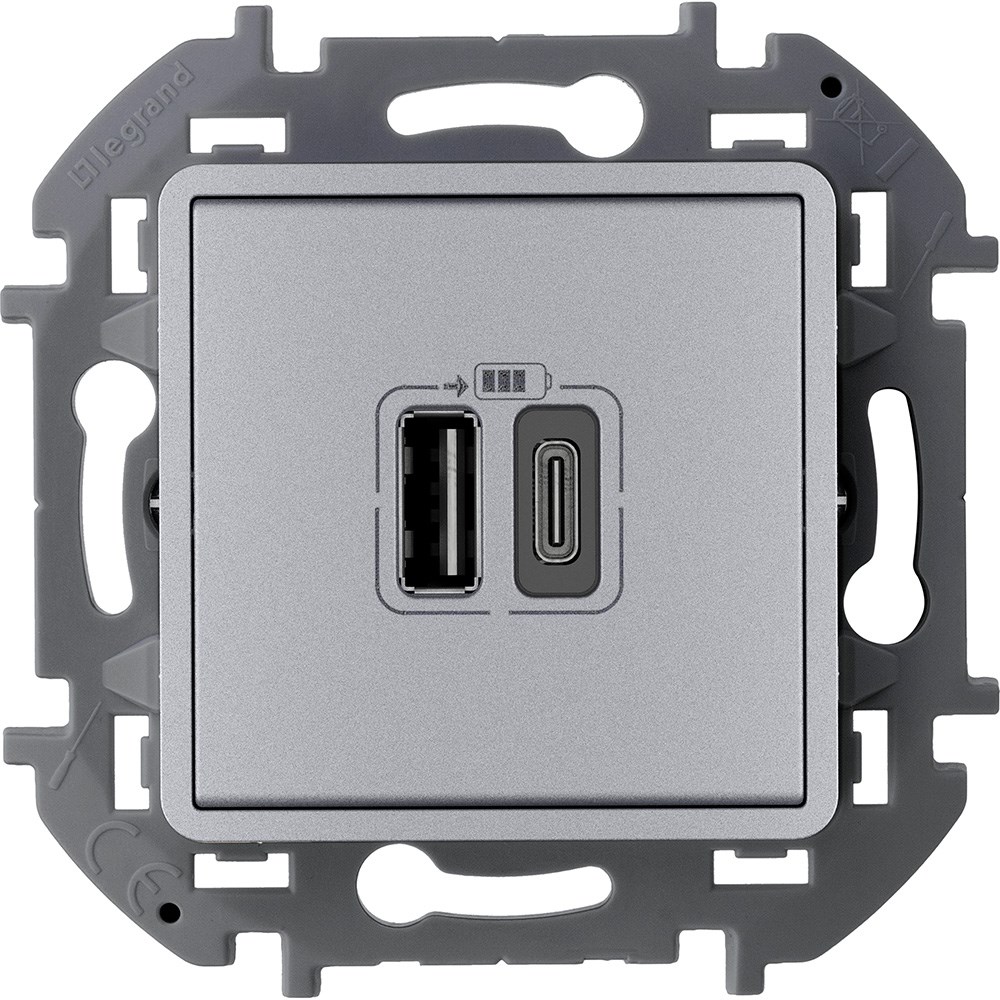 Legrand Inspiria алюминий зарядное устройство с двумя USB-разьемами A-C 240В/5В 3000мА 673762