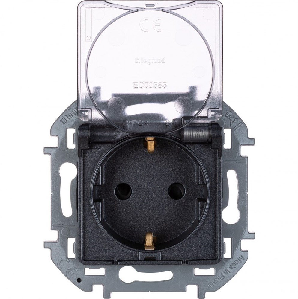 Legrand Inspiria антрацит розетка 2К+З IP 44 с откидной крышкой и шторками - немецкий стандарт - 16 А - 250 В 673743