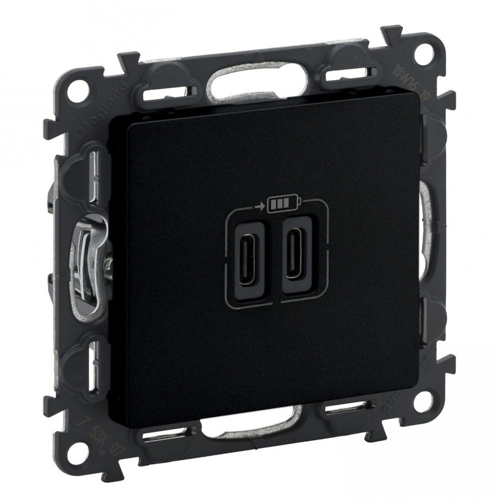 Legrand Valena Life Black зарядное устройство с двумя USB-разьемами тип C-тип С 240В/5В 3000мА. С лицевой панелью. Цвет антрацит. 756307