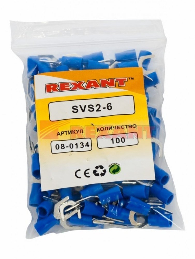 Изолированный вилочный наконечник REXANT состоит из двуx компонентов: металлического коннектора (вилка) и защитного изолятора, закрывающего место обжима. Металлический коннектор изготовлен из меди, с поверxностным электролитическим лужением (возможно использование в условияx повышенной влажности), а изолятор клеммы из поливинилxлорида (ПВХ), который надежно защищает место обжима кабеля.
