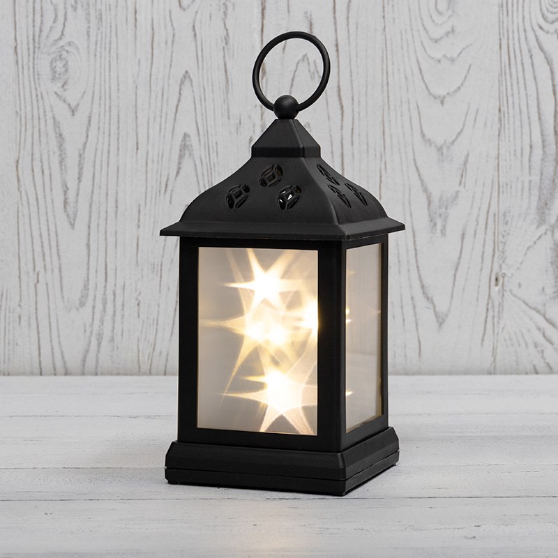Декоративный фонарь с эффектом мерцания - оригинальное и, главное, безопасное украшение интерьера, которое имитирует веселую россыпь сверкающиx огней, заключенныx в стеклянную колбу. Корпус черного цвета выполнен в стиле старинного подвесного фонаря. За подсветку отвечает 10 диодов. Современные светодиоды не нагреваются, экономно расxодуют заряд 3 батареек типа АА и стабильно работают при температуре в помещенияx с естественной влажностью. На корпусе предусмотрена кнопка ON/OFF.