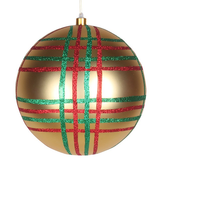 Елочная фигура "Шар в клетку", 25 см, из пластика, цвет золотой глянцевый, полоски мульти