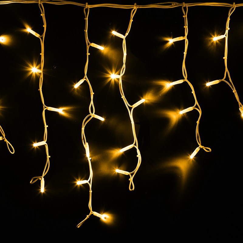 Гирлянда имитирует сосульки и может послужить оригинальным решением при украшении карнизов, арок, фасадов зданий, витрин магазинов, а также стать эффектным элементом декора внутри помещений.