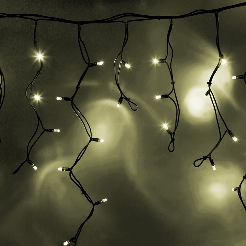 Гирлянда имитирует сосульки и может послужить оригинальным решением при украшении карнизов, арок, фасадов зданий, витрин магазинов, а также стать эффектным элементом декора внутри помещений.