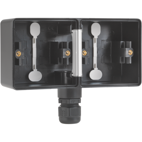 Niko Hydro Черный Рамка на 2 поста, гориз, 1 вход M20, с каб/вводом 761-84851