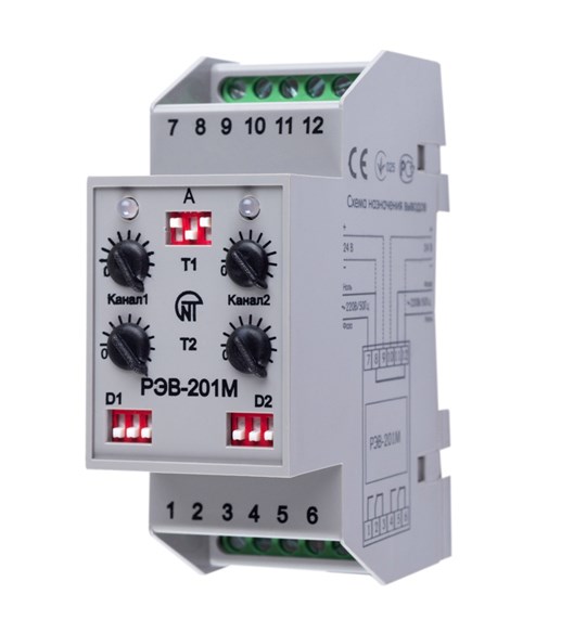 Реле времени электронное двухканальное с задержкой на включение и отключение РЭВ-201М предназначено для коммутации электрических цепей переменного тока 220В/50Гц и постоянного тока 24-100В с регулируемой задержкой времени включения от 0 до 36000с.
