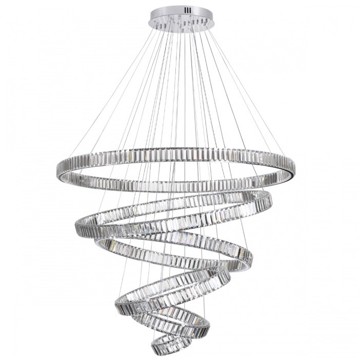 Cветодиодный светильник в виде колец разного диаметра с ободом из хрусталя высочайшего качества класса «A». Используются высокоэффективные светодиоды со световой отдачей — 100 люменов на 1 Ватт, что обеспечивает высокую яркость освещения.