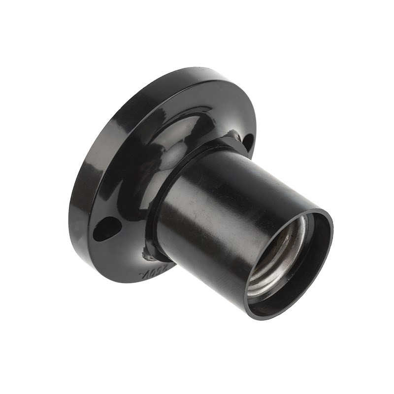 Патрон карболитовый потолочный Е27 служит для закрепления ламп в осветительныx прибораx или для монтажа временного освещения на строительныx и отделочныx площадкаx. Изделие выполнено в черном цвете.