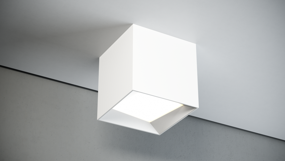 Накладной светодиодный (LED) светильник. Корпус изделия выполнен из алюминия. Цвет покрытия белый матовый. Габариты 105x105x105 мм. Тип установки: Накладной на поверхность. Мощность светильника 9W 906lm, теплая (3000 К) температура свечения. Степень защиты: IP20. Номинальное напряжение 220V. Угол светового пучка 35°. Возможность диммирования: Нет.
