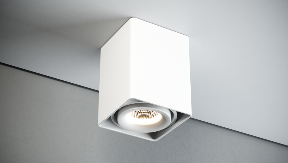 Накладной потолочный светильник под установку лампы MR16 GU10, поворотный. Корпус изделия выполнен из алюминия. Цвет покрытия белый матовый. Габариты 93x93x120 мм. Тип установки: Накладной на поверхность. Мощность устанавливаемой лампы не должна превышать 50W. Степень защиты: IP20.