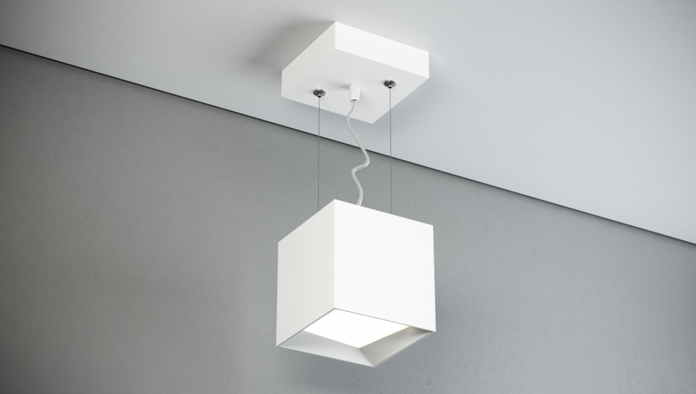 Подвесной светодиодный (LED) светильник. С поворотным модулем освещения. Корпус изделия выполнен из алюминия. Цвет покрытия белый матовый. Габариты 105x105x145…2000 мм. Тип установки: Накладной на поверхность. Мощность светильника 9W 1120lm, теплая (3000 К) температура свечения. Степень защиты: IP20. Номинальное напряжение 220V. Угол светового пучка 35°. Возможность диммирования: Нет.