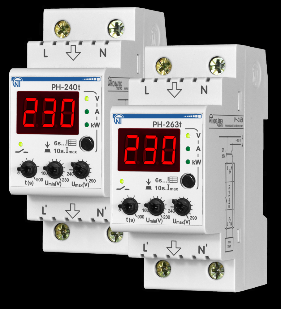 Реле напряжения предназначено для защиты бытового и промышленного электрооборудования (холодильников, кондиционеров, стиральных машин, теле-, видео- и аудиотехники и т.п.) от недопустимых колебаний напряжения в сети и последствий обрыва нейтрали (нуля). Реле напряжения: — индицирует действующее значение напряжения в сети и состояние выходных контактов (состояние нагрузки); — измеряет и выводит на дисплей потребляемый нагрузкой ток, активную мощность и отключает нагрузку при превышении заданного порога по току; — сохраняет в энергонезависимой памяти информацию о пяти последних авариях; — имеет защиту от перегрева из-за плохого контакта проводников в клеммах в результате загрязнения или недостаточного усилия зажатия. Изделие может использоваться как цифровой мультиметр (индикация напряжения сети, активной мощности и потребляемого тока). Питание изделия осуществляется от цепи, которая питает нагрузку.