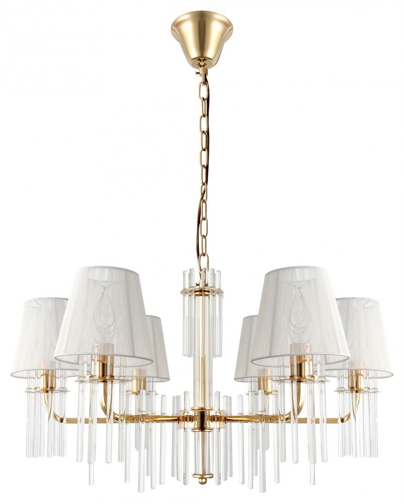 Rivoli Lilith - большая подвесная люстра в стиле современная классика. Итальянская коллекция Lilith Rivoli, в которую входят люстры потолочные под 6 и 8 ламп (арт. 1039-306, 1039-308) и настенное бра (арт. 1039-401), изготовлена из высококачественного легкого металла и декорирована удлиненными стеклянными колбами. Цвет люстры Lilith - французское золото - теплый и уютный. Лаконичные формы арматуры подходят для современных интерьеров, стремящихся к минимализму. Плафоны люстры из прочной прозрачной ткани хорошо пропускают свет. Люстры на потолок Rivoli Lilith c 6 плафонами освещают площадь до 18 м2. Люстры под 6 ламп Е14 40 Вт подойдут для основного освещения гостиной, спальни, детской, кабинета, квартиры-студии. Декоративные элементы отличаются выверенной формой, простотой и высокой прозрачностью под хрусталь. Люстры в спальню Lilith Rivoli помогут создать интерьер в классическом стиле, в замковом стиле, в стиле модерн, эклектика. Идеальны для загородного дома, холла гостиниц, ресторанов.