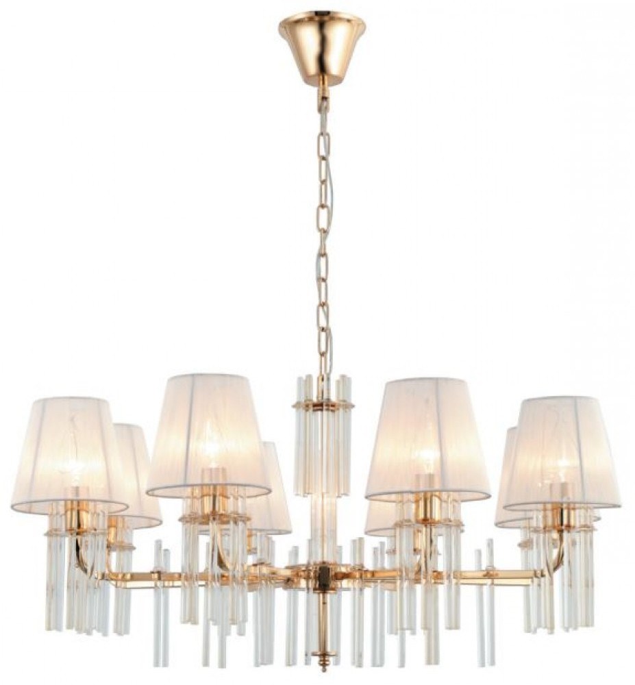 Rivoli Lilith - большая подвесная люстра в стиле современная классика. Итальянская коллекция Lilith Rivoli, в которую входят люстры потолочные под 6 и 8 ламп (арт. 1039-306, 1039-308) и настенное бра (арт. 1039-401), изготовлена из высококачественного легкого металла и декорирована удлиненными стеклянными колбами. Цвет люстры Lilith - французское золото - теплый и уютный. Лаконичные формы арматуры подходят для современных интерьеров, стремящихся к минимализму. Плафоны люстры из прочной прозрачной ткани хорошо пропускают свет. Люстры на потолок Rivoli Lilith c 8 плафонами освещают площадь до 24 м2. Люстры под 8 ламп Е14 40 Вт подойдут для основного освещения гостиной, спальни, детской, кабинета, квартиры-студии. Декоративные элементы отличаются выверенной формой, простотой и высокой прозрачностью под хрусталь. Люстры в спальню Lilith Rivoli помогут создать интерьер в классическом стиле, в замковом стиле, в стиле модерн, эклектика. Идеальны для загородного дома, холла гостиниц, ресторанов.