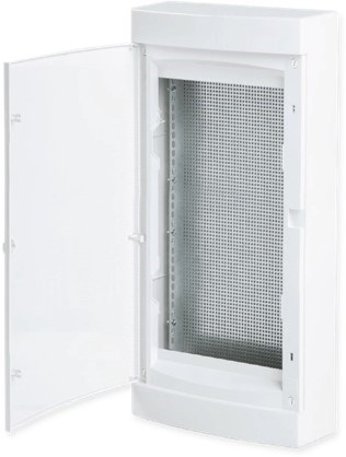 Корпуса пластиковые серии «Unix IP40» предназначены для сборки силовых распределительных и слаботочных щитов. На DIN-рейки устанавливается модульное оборудование. На монтажные платы - антенные разветвители, Wi-Fi роутеры, патч-панели и иное слаботочное оборудование. Щиты устанавливаются на поверхность стены. Ассортимент корпусов с din-рейками представлен размерами вместимостью до 72 модулей, по 12 или 18 модулей в ряду, с белой глухой или прозрачной тонированной дверью, с DIN-рейками или перфлорированными монтажными платами. Особенностью корпусов является плоское основание, упрощающее сборку и подключения внутри, лицевая панель Корпуса изготовлены из качественного глянцевого ABS-пластика, имеют минималистичный дизайн и впишутся в большинство интерьеров.