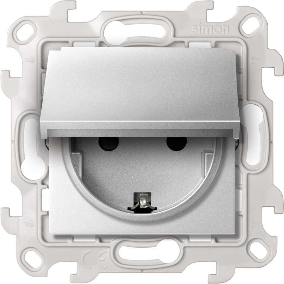 Simon 24 Алюминий Розетка IP44 с крышкой, заземлением и шторками Schuko 2Р+Е 16A 250В~ с системой Push&Go 2420448-033