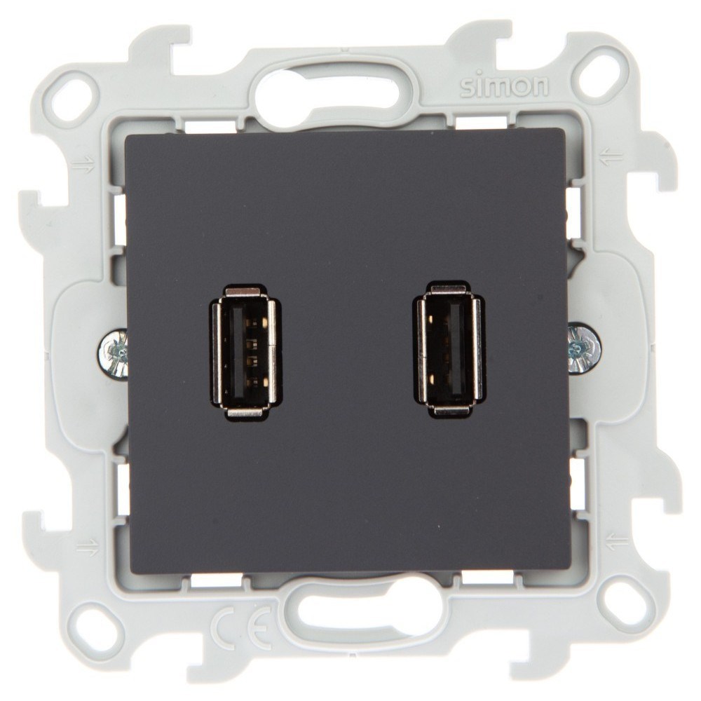 Simon 24 Графит Коннектор 2хUSB 2.0 тип A 2411090-038