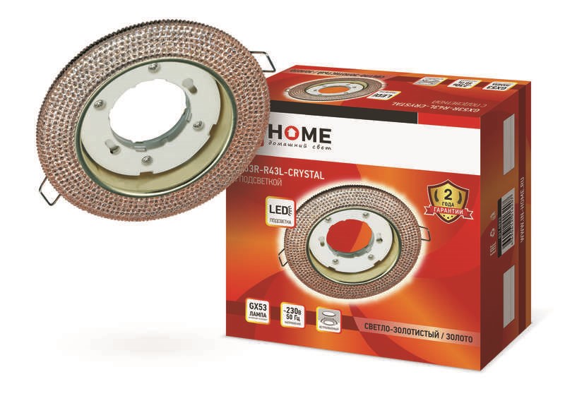 Светильник встраиваемый GX53R-crystal R43L под лампу GX53 с подсветкой 230B Светло-Золотистый/ Золото 4690612016207 pe731150