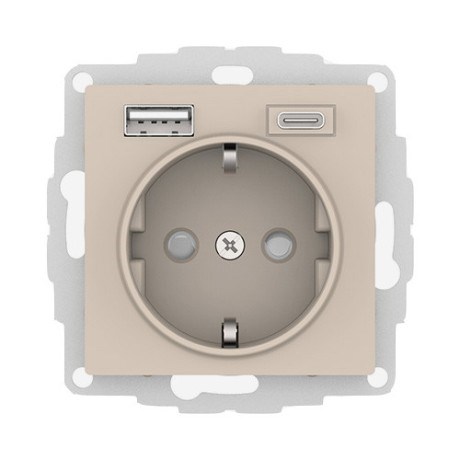 Розетка силовая Systeme Electric (ранее Schneider Electric) серии AtlasDesign 16А (цвет песочный) с заземлением и шторками с розеткой USB, с двумя разъемами тип А и тип С. Розетка совмещает в себе сразу 3 функции в одном изделии. Удобное и современное решение для дома, офиса и других помещений. Лицевые детали из качественного ABS-пластика, устойчивого к царапинам и УФ-излучению. Заземляющий контакт обеспечивает дополнительную защиту от удара электрическим током. Шторки обеспечивают дополнительную безопасность в доме, где находятся дети. Одно устройство позволяет как подключить бытовые приборы, так и зарядить мобильные устройства.